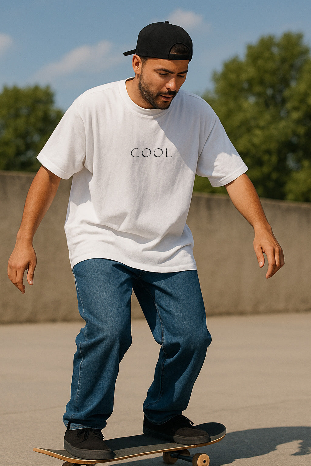 Level up your streetwear game with the Skater Vibe Tee – where chill meets thrill. The front flaunts a minimal “COOL” text for that effortless attitude, while the back stuns with a bold skater character mid-air, decked out in street style. Perfectly oversized for comfort, this tee is made for city rides, late-night hangs, and everything in between.